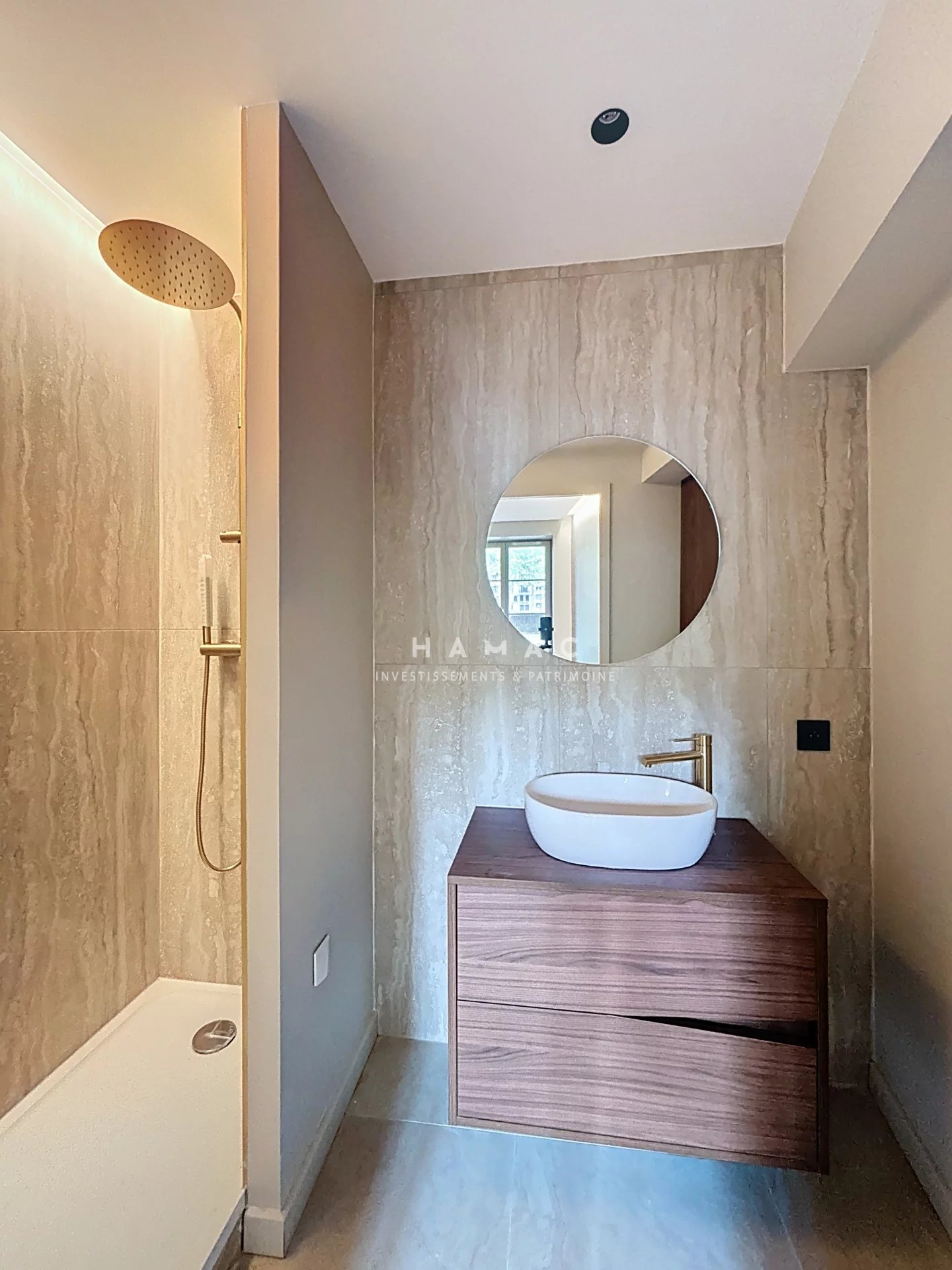 emplacement pour une machine à laver, grand placard/rangement sur mesure, 1 salle d'eau avec douche à l'italienne et équipée d'un système de VMC électrique, 1 WC suspendu.